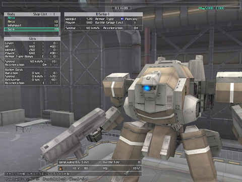 As mentioned earlier, Front Mission: Online is a third-person shooter style game. It still has many traditional Front Mission elements, such as the customization of the wanzers, but the action is played out in real-time. The third-person shooter elements are comparable to From Software’s Armored Core, but it actually doesn’t quite play the same. Once registered in the game, players create their pilots and choose a specific job to train under. These jobs come with special ability perks (Missileer pilots have quicker missile lock-ons) that determines what kinds of wanzer setups will work best.